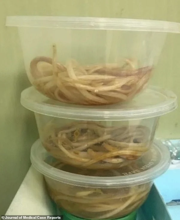 Surgeons performed a laparotomy — an incision into the abdomen — and found worms blocking three sections of the small intestine. The parasites were removed and sent to the lab for analysis.