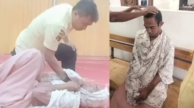 Man dressed in a hijab entered the women's section of a mosque in Indonesia to spy on women (2 photos + 1 video)