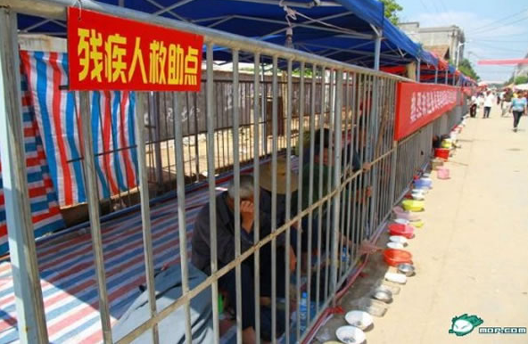 They were installed by organizers of an annual religious festival in Nanchang in southern China, where thousands of people gather. And in previous times, beggars specially flocked to the festival in order to influence the emotions of visitors and force them to fork out with their pitiful requests.