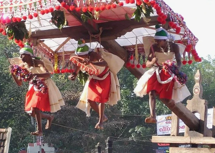 Every year in southern India, the Garudan Thokkam Festival, which literally means "Hanging of the Eagle," is celebrated colorfully. Garudan is a mythical figure considered the king of birds. That is, he is half man, half eagle, like a centaur, but a bird. The entire festival revolves around the main gods of the Hindu pantheon – Kali and Vishnu. Once, when Kali was suffering from thirst, Vishnu sent the bird god Gaudan (who was also another of Vishnu's mounts) to her so that his blood could quench Kali's thirst.