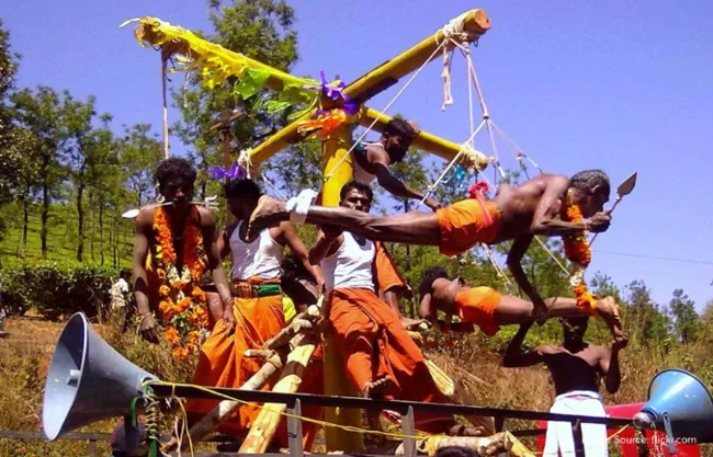 Human chandeliers – why do Indians hang themselves on hooks (5 photos + 1 video)