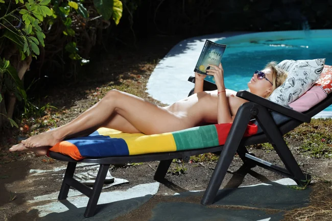 Очаровательная блондинка Джати в белом бикини