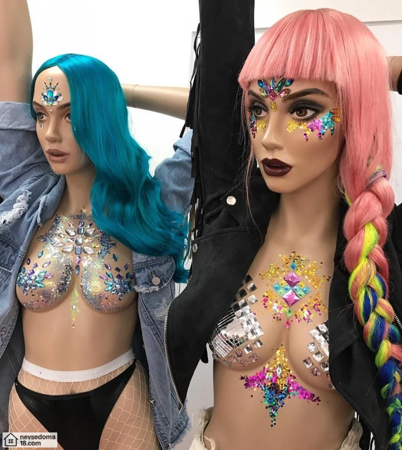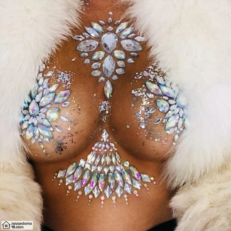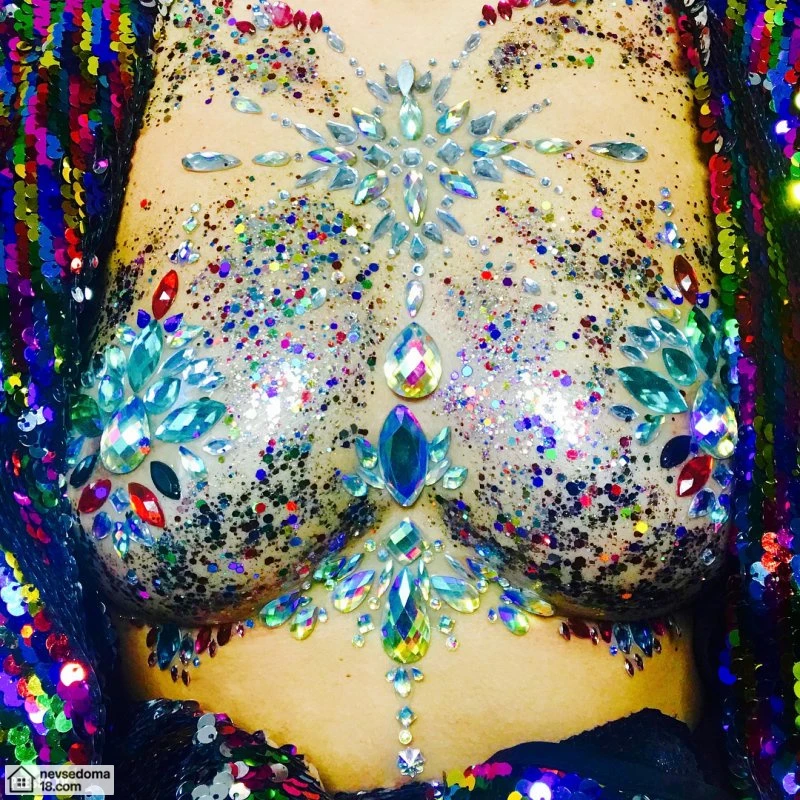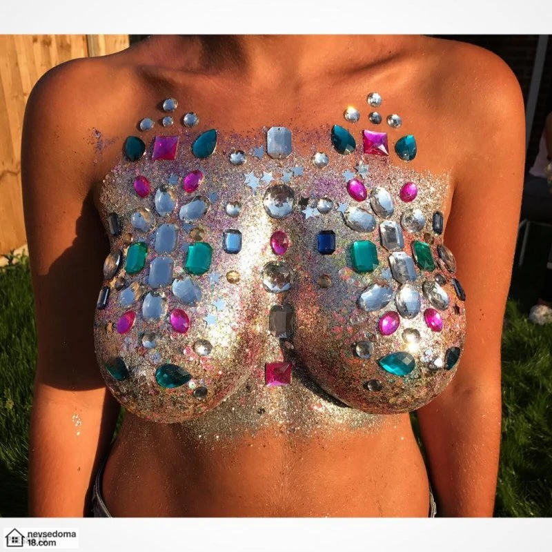 Glitter Boobs - Новая мода, привезенная из британских фестивалей, распространяется в США и Австралии, в которых женщины меняют свой лифчик в пользу яркой краски с разноцветными драгоценными камнями