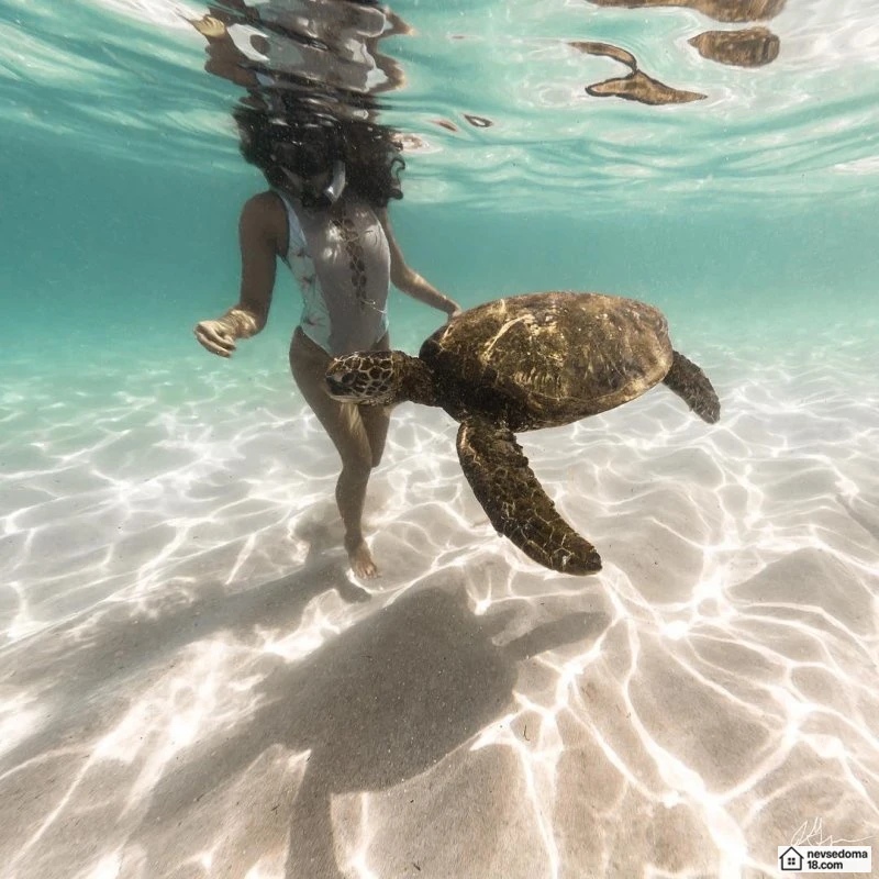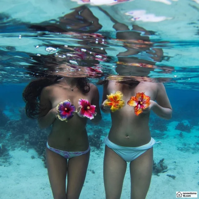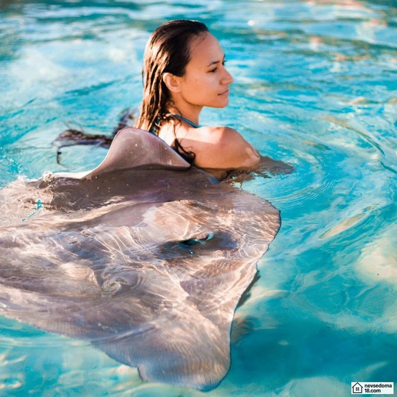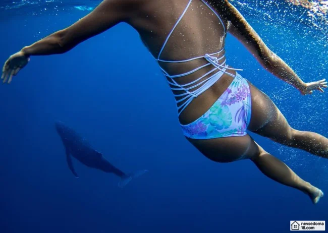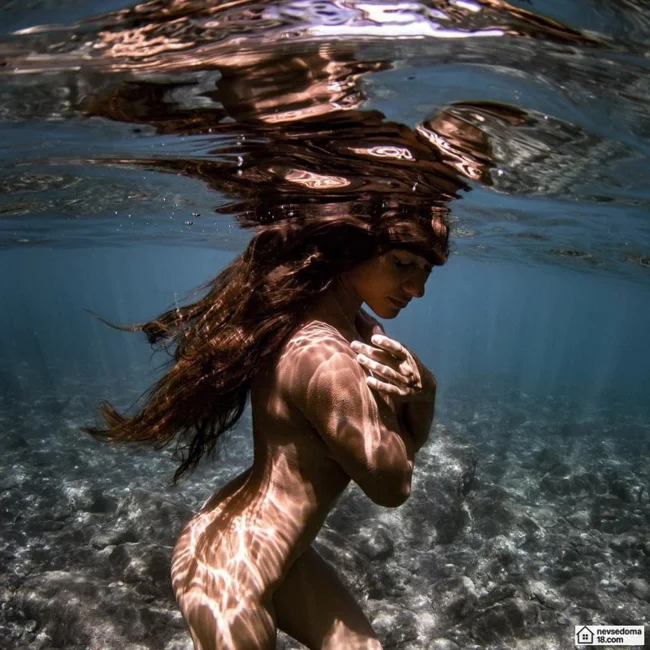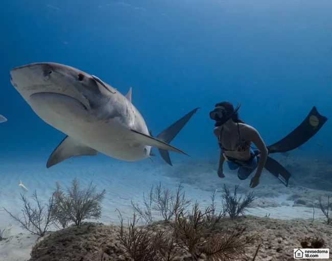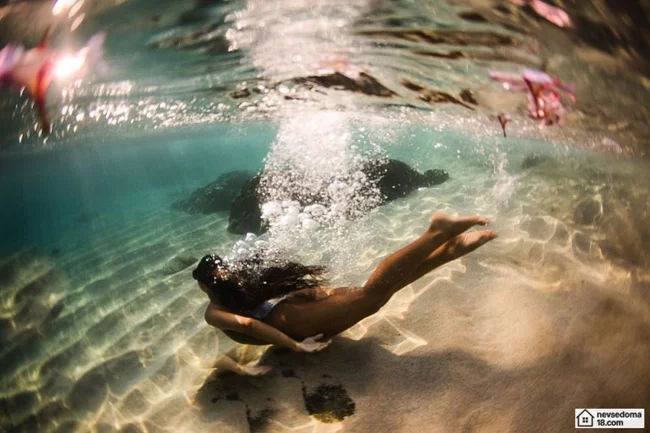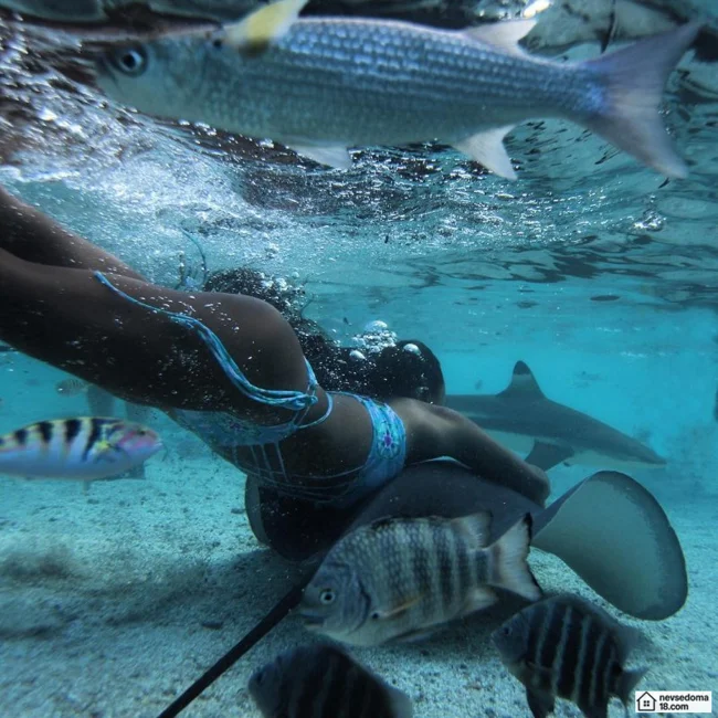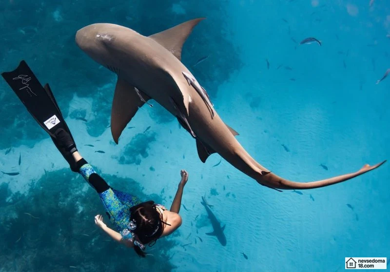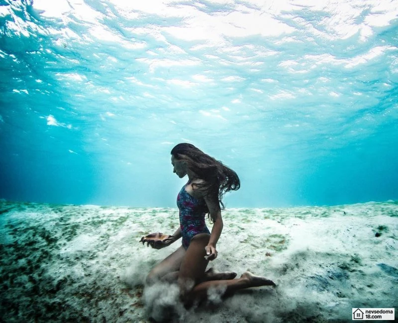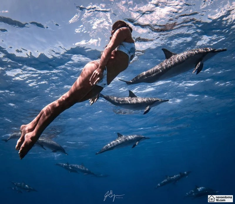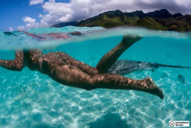 Рава Рэй из Таити показана в красивой подводной фотосессии с опасными существами. Но, похоже это её не беспокоит . Она сказала, что не испытывает страха когда ныряет среди акул, черепах, скатов, китов и дельфинов и что она научилась «делиться» с ними водой.