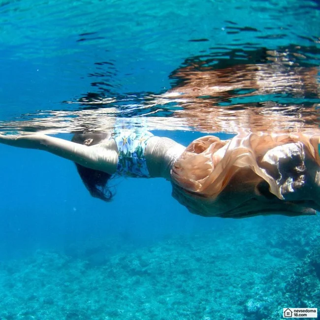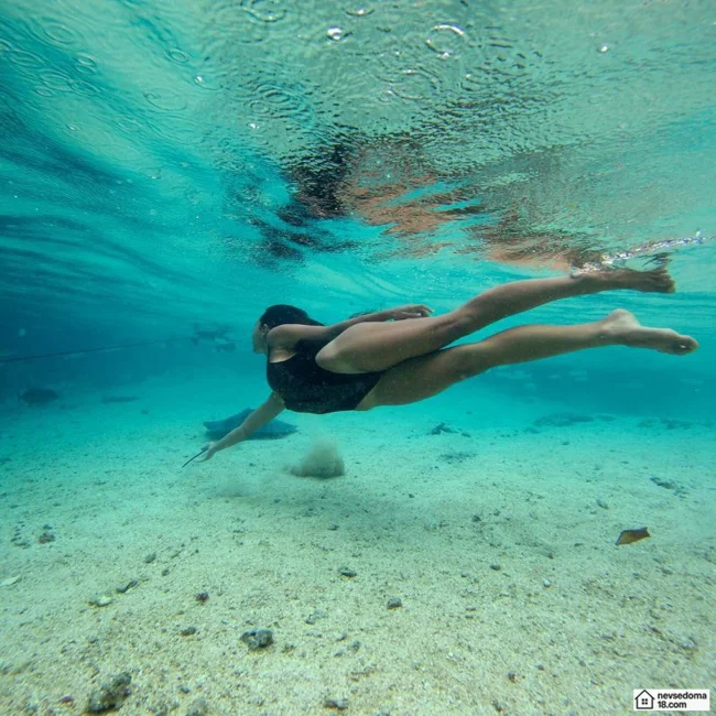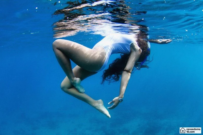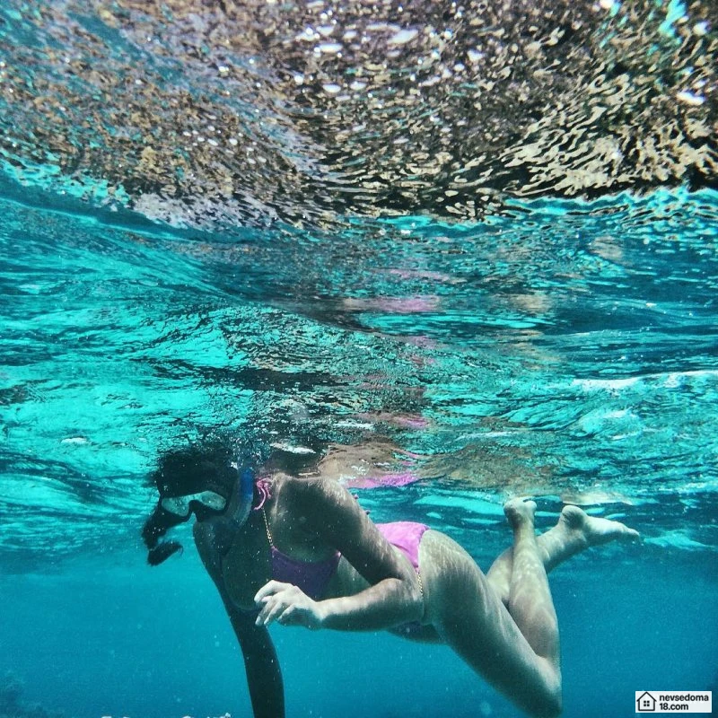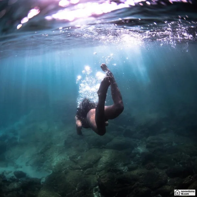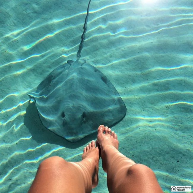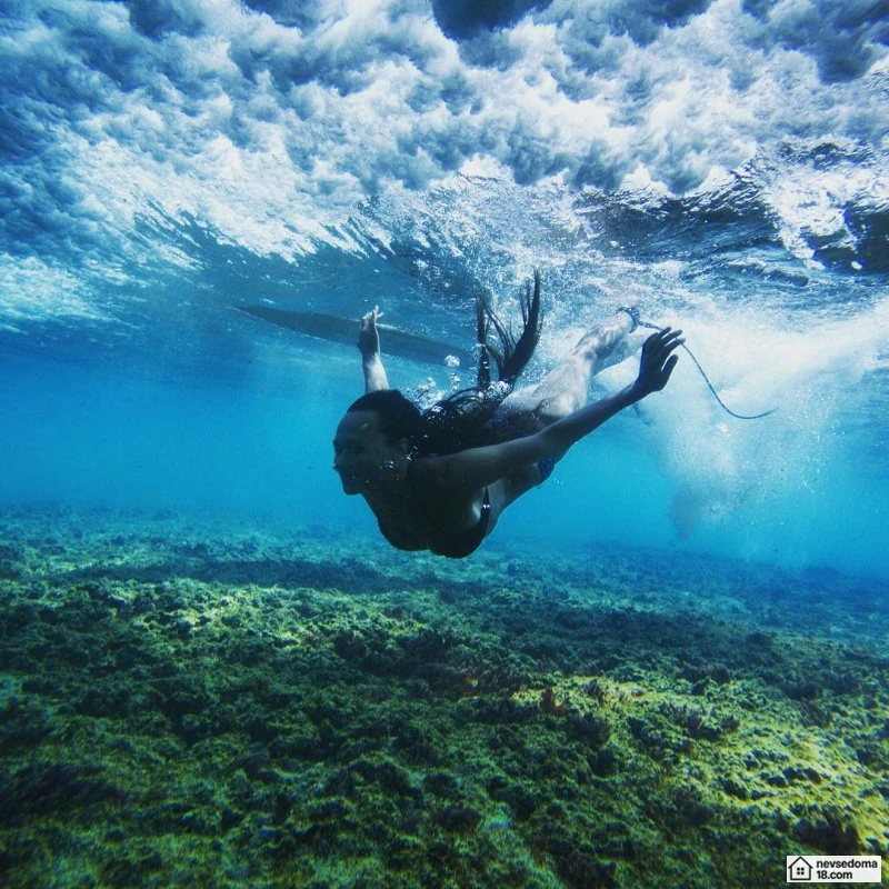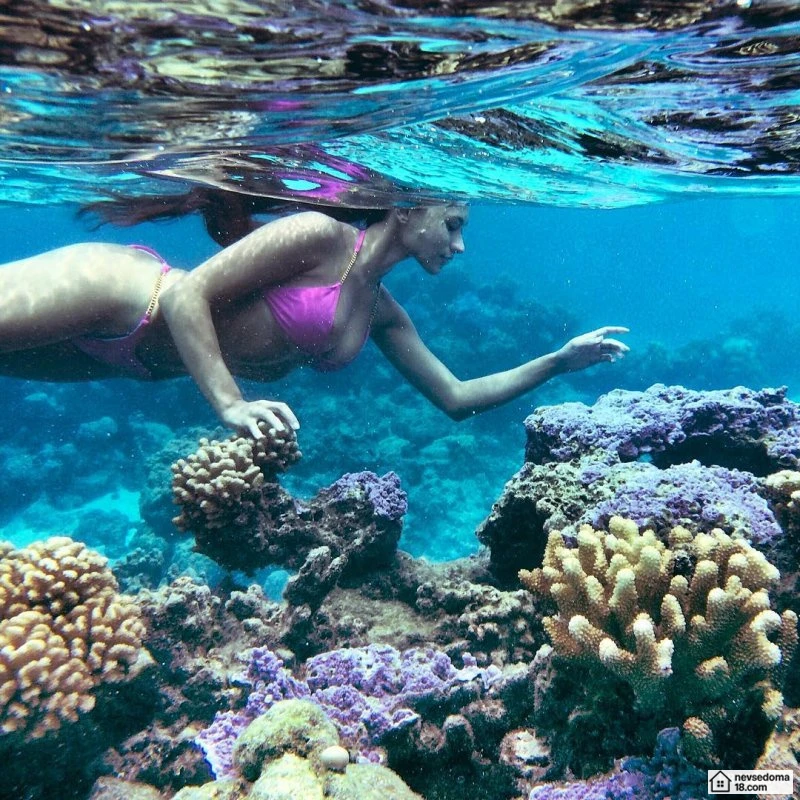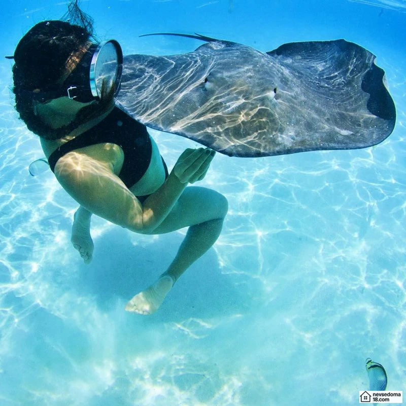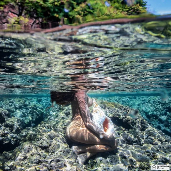 Рава Рэй из Таити показана в красивой подводной фотосессии с опасными существами. Но, похоже это её не беспокоит . Она сказала, что не испытывает страха когда ныряет среди акул, черепах, скатов, китов и дельфинов и что она научилась «делиться» с ними водой.