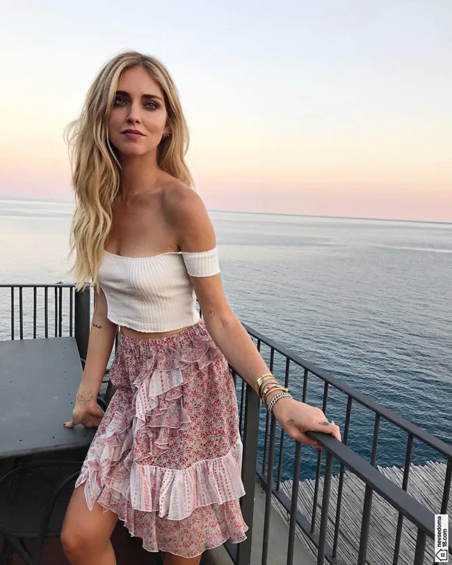Кьяра Ферраньи (Chiara Ferragni) - 31-летняя итальянский блогер, модельер, бизнес-леди и модель. Является основателем популярного блога о моде The Blonde Salad. Как дизайнер, она сотрудничала со многими из самых известных мировых брендов, включая Pantene, Tod's, Chanel, Louis Vuitton и Christian Dior. Известна своей одноименной линией обуви «Chiara Ferragni Collection». В Инстаграме у нее 16,3 миллиона подписчиков.