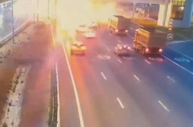 На 18 кілометрі МКАД вантажівка Мерседес зіткнулася з мікроавтобусом Соболь, який стояв, і від удару спалахнув. Загинули два пасажири мікроавтобуса, які не змогли вибратися із салону. Водія з опіками в стані коми було госпіталізовано. Момент зіткнення потрапив до об'єктиву камери.