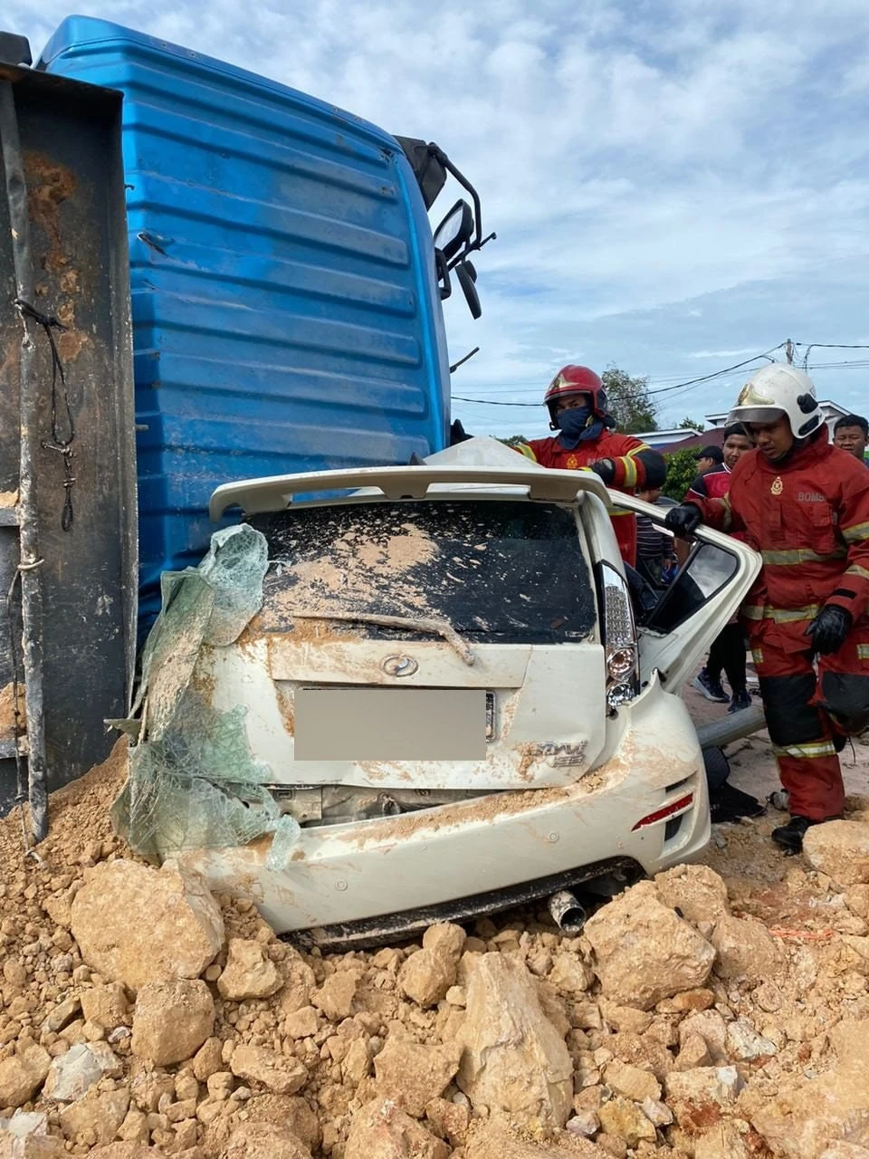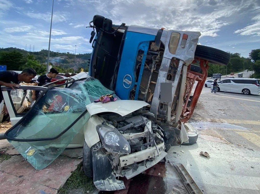 У Кланзі, Малайзія, вантажівка, що перевозила грунт, протаранила сміттєвоз і два легкові автомобілі "Перодуа Муві", після чого перекинулася. Дивно, але обійшлось без жертв. Травми отримали чотири особи.