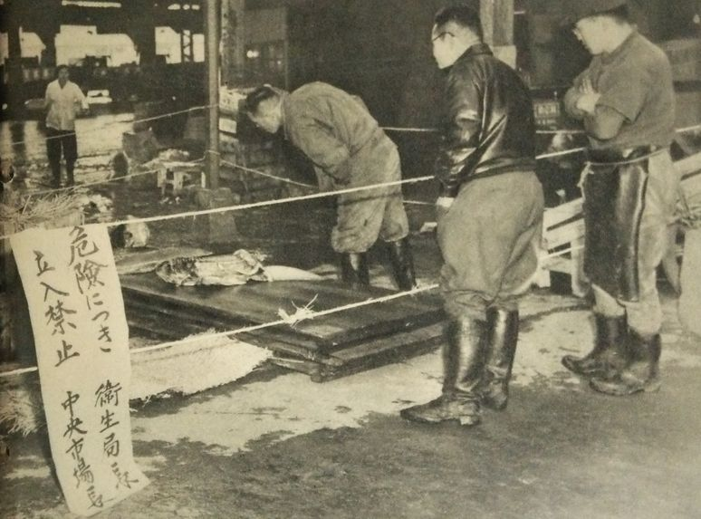 Тунець, що зазнав радіаційного зараження, на ринку в Осаці, 1954 рік