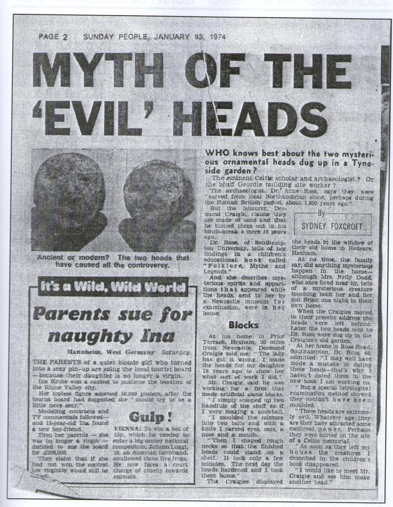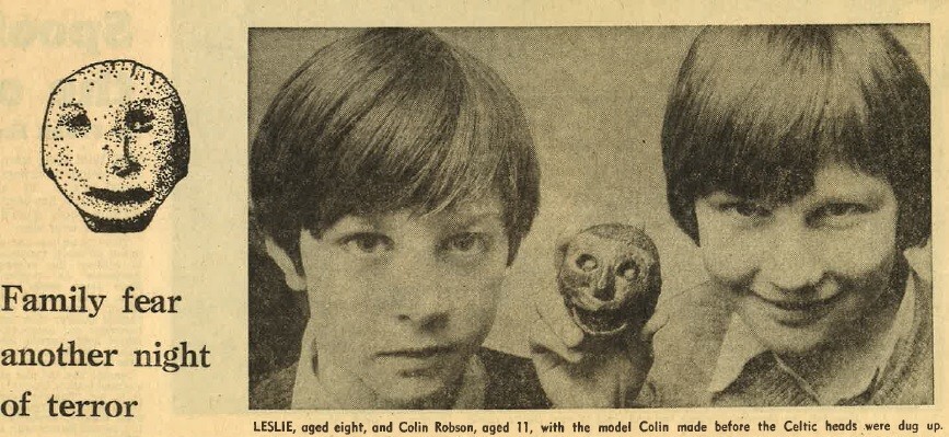 Історія сталася відносно недавно, коли забобони темного часу, здавалося, мали залишитися в минулому. У 1971 році родина Робсонів, яка проживала в Хексхемі, графство Нортумберленд на півночі Англії, залишила будинок через дивні події. Дива почалися для них тільки після того, як вони виявили у своєму саду дві кам'яні голови.