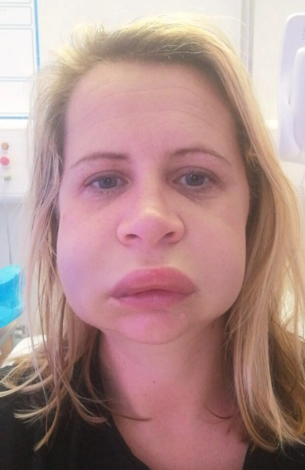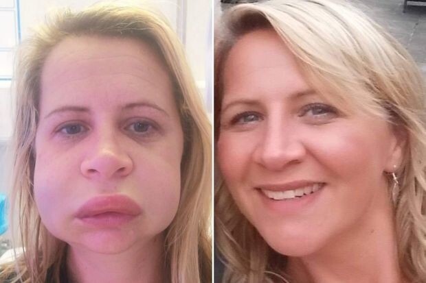 Британку госпіталізували на одну ніч, а потім змусили носити вдома маску, щоби діти не лякалися її деформованого обличчя. Згодом набряк зменшився, а інфекція пройшла, але жінка помітила незворотні зміни у своєму зовнішньому вигляді.
