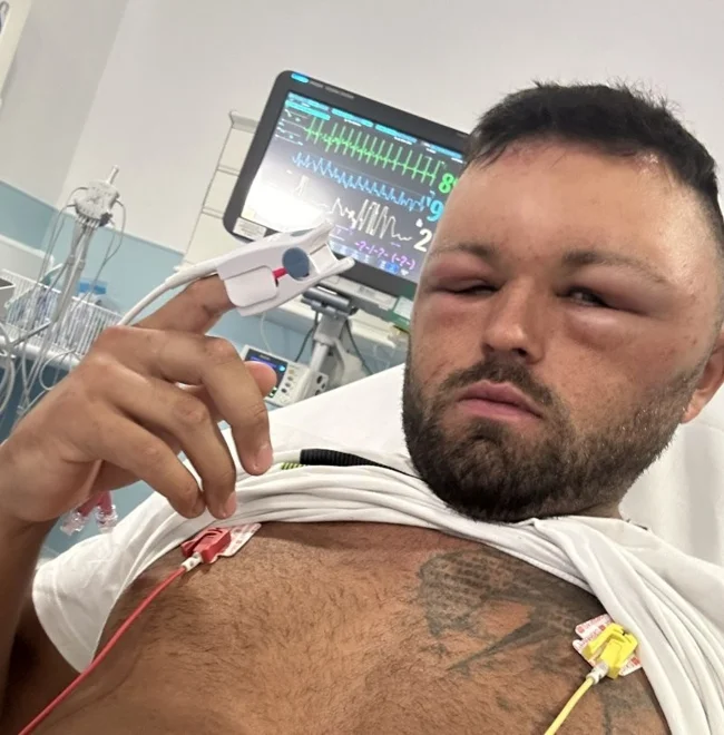 "Я був зовсім не схожий на себе. Голова роздулася до величезних розмірів. Я був схожий на Мегамозку. Поїхав до лікарні, але мене відправили додому. Сказали, що якщо стане гірше, то прийти наступного дня. Я повернувся додому і моя дівчина була вражена, вона не могла на мене дивитися, тому що в мене була величезна куляста голова».