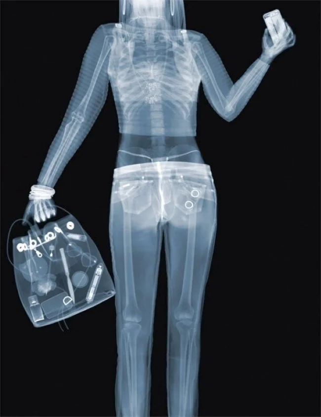На цих знімках менш щільні – м'язи, шкіра та інші тканини людини виглядають світлими. А металеві браслети, зброя, годинник, пряжки та навіть пірсинг – темними. Приблизно так: