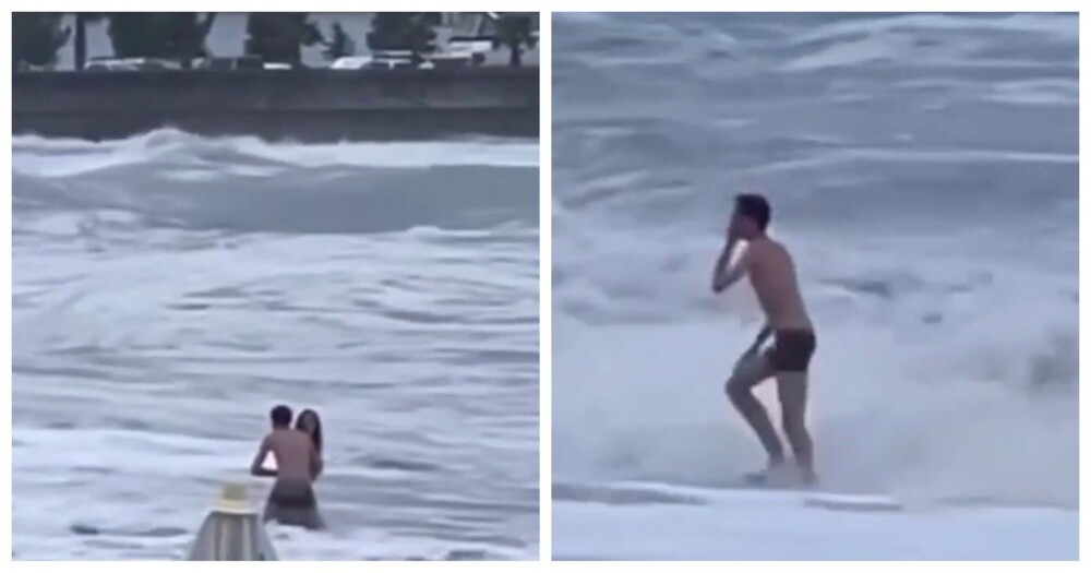 16 червня туристи з Липецької області прогулювалися сочинським пляжем «Рів'єра». Хлопець обіймав свою 20-річну подругу, і вони все далі заходили у штормове море.