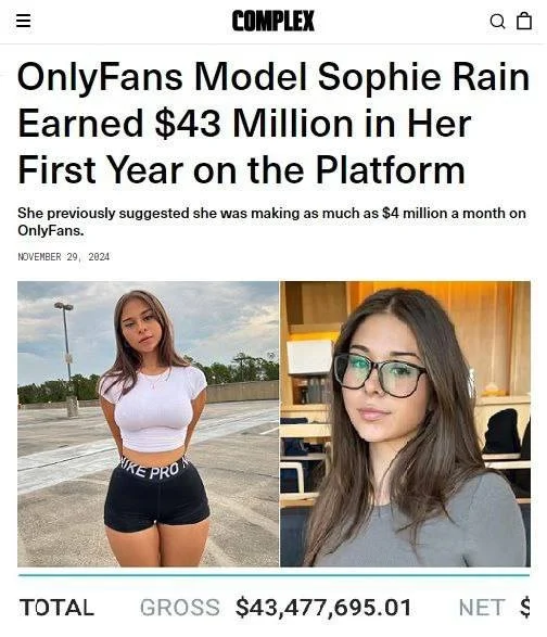 Ми вже розповідали про Софі Рейн, яка похвалилася нереальними заробітками. У 20 років на її рахунку вже 43 мільйони доларів - і все завдяки платформі Onlyfans. Ось тільки, як з'ясувалося, дівчина не така проста...