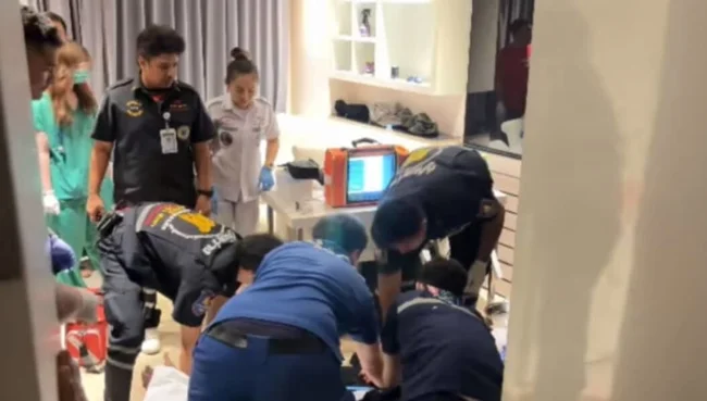 Інцидент стався пізно увечері у вівторок у елітному кондомініумі на вулиці Soi Chaiyaphruek 1. Рятувальники знайшли потерпілого у критичному стані та револьвер 38 калібру. У кімнаті також знайшли балони із закисом азоту та наркотичне приладдя.