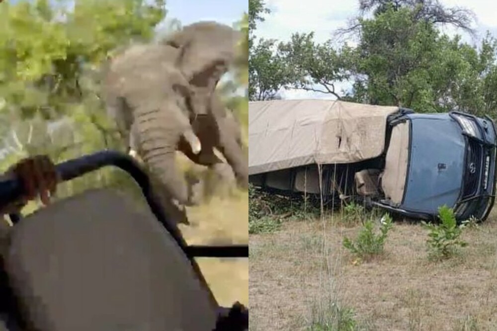 Гід криками намагався відігнати слона, але той був некерований. Він налетів на машину та хоботом перевернув її, після чого продовжив атаку.