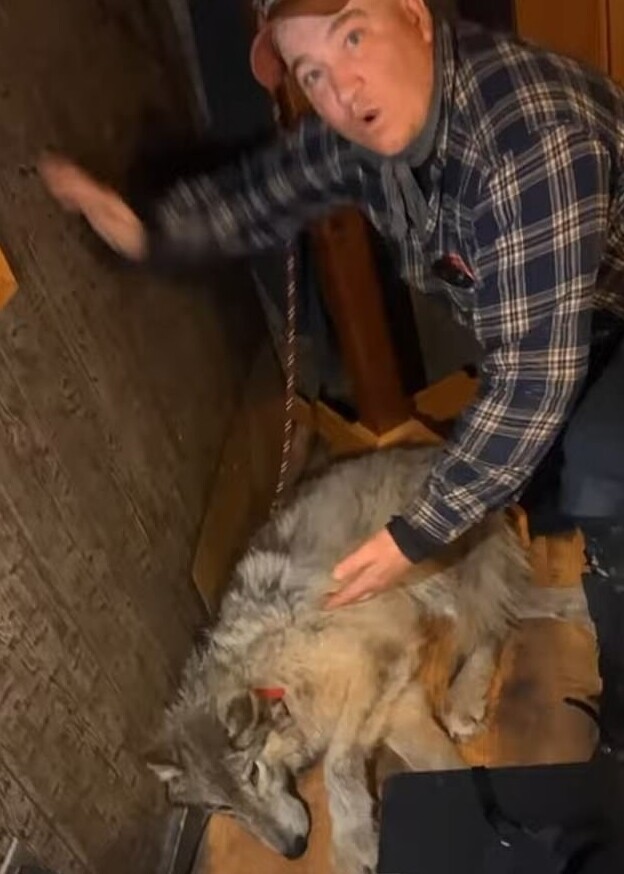 42-річний Коді Робертс на снігоході збив вовка, а потім приніс тварину, що вмирає, в бар. У мережі з'явилися знімки, як мисливець цілує звіра, позує з ним, попередньо заклеївши йому пащу.
