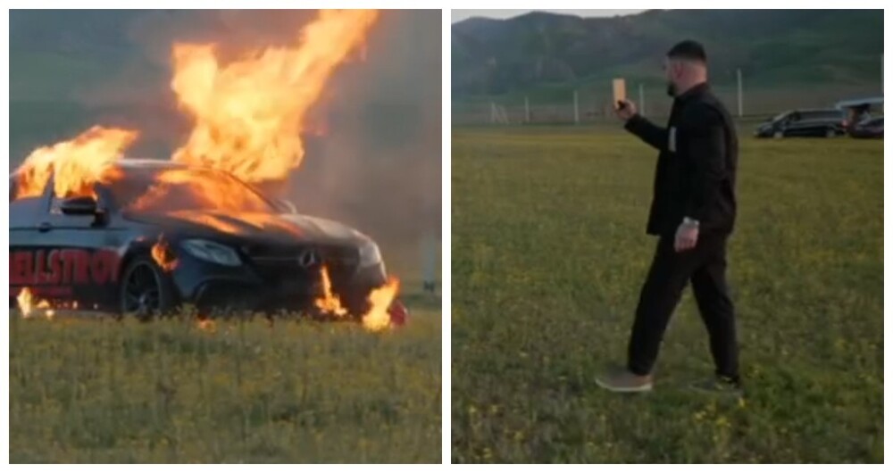В сети расходится видео, на котором кавказские блогеры, некто Тамаев и некто Венгалби, сжигают машину - Мерседес Е63 стоимостью в 100 тысяч долларов. Размер ипотеки, которую многие семьи в России выплачивают годами.