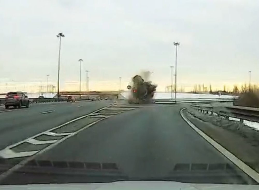 На 37-м километре Санкт-Петербурской КАД водитель автомобиля БМВ на полном ходу врезался в разделительное ограждение, перелетел через него и приземлился на крышу. Очевидцы аварии вытащили пострадавшего из автомобиля. Бригада скорой помощи увезла его в больницу в состоянии средней степени тяжести.