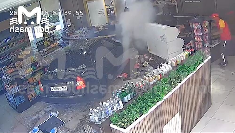В России автомобиль влетел в здание АЗС (3 фото + 1 видео)