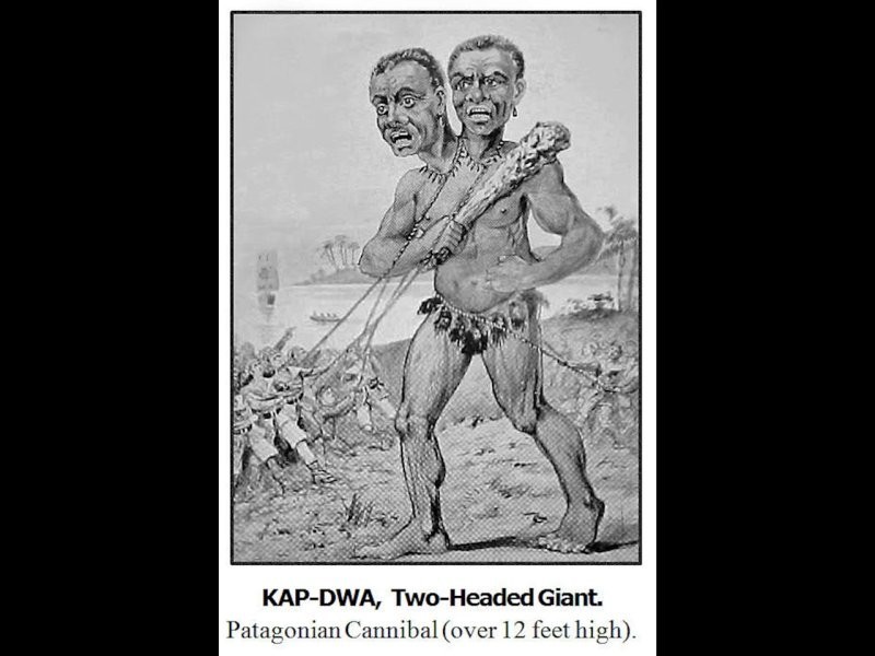 Именно британские газеты стали отправной точкой распространения историй о двухголовом патагонском гиганте. Рост Кап-Два составляет около 3,7 метра, что делает его самым крупным человекоподобным существом.