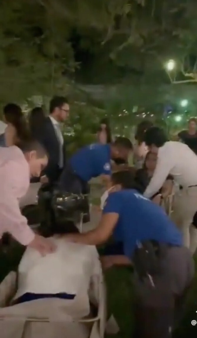 На опубликованных снимках гостям, всё ещё одетым в вечерние наряды, оказывают медицинскую помощь. 80 человек были госпитализированы.
