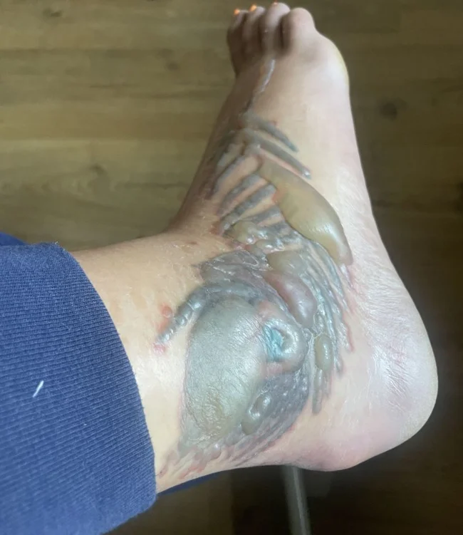 «Моя ступня выглядела деформированной, не было ни одного участка на месте татуировки без волдырей», — вспоминает она.