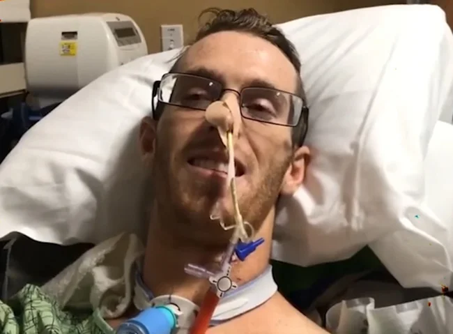 В результате падения у мужчины были раздроблены шейные позвонки, он остался квадриплегиком. Позже он перенес несколько инсультов, связанных с полученными повреждениями. Все это произошло за несколько недель до окончания университета, что полностью изменило его жизнь.