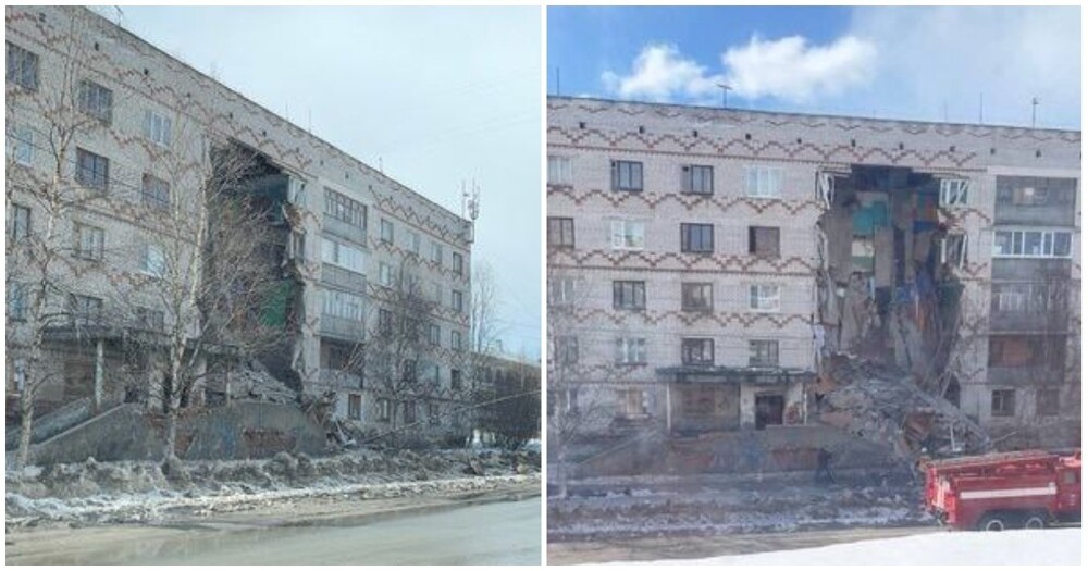 В России обрушилась часть многоквартирного дома (2 фото + 1 видео)