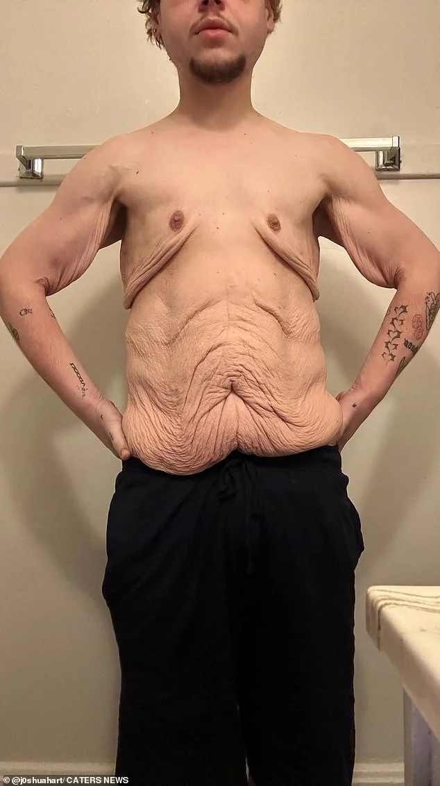 23-летний Джошуа Харт из Огайо за год похудел с 194 до 68 килограммов. Но столкнулся с неожиданным побочным эффектом — его стали принимать за женщину или трансгендера с обвисшей грудью.