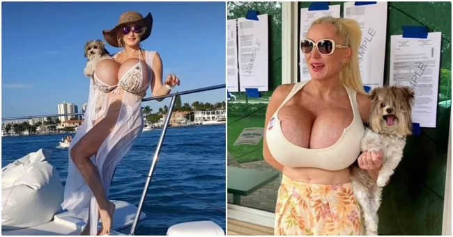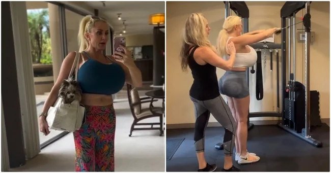 На ваш суд представляем Тэмми Эрнандес. Ей 48 лет, она замужем, и прославилась она благодаря контенту в соцсетях. Она публикует провокационные ролики с реакциями людей на неё, тренировки по фитнесу - и всюду берёт своего пса.