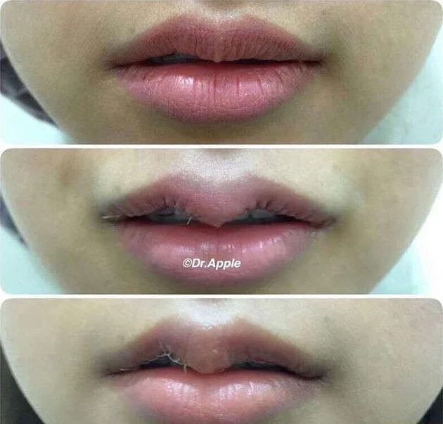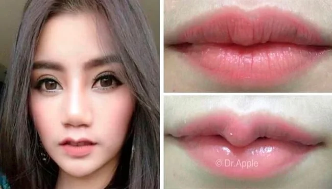 Верхняя губа деформируется таким образом, чтобы получилась форма "клювика" - так, по мнению азиаток, выглядит рот младенца, а кореянки всегда стараются выглядеть моложе.