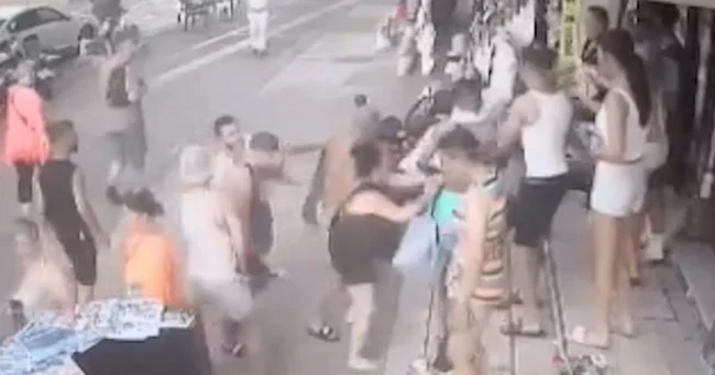 В Алании обычный уличный спор перерос в жестокую драку. Туристы и владельцы магазинов начали бить друг друга на глазах у шокированных прохожих.