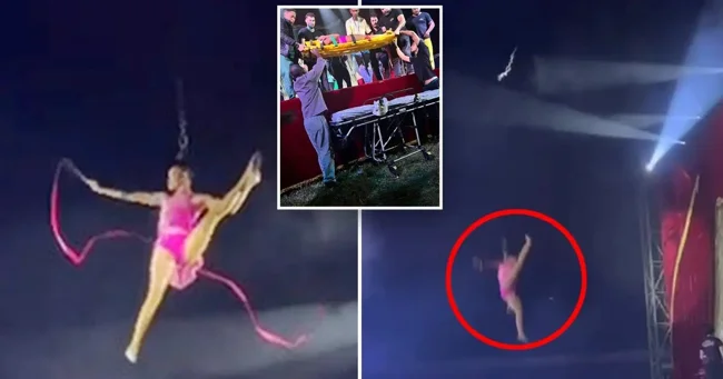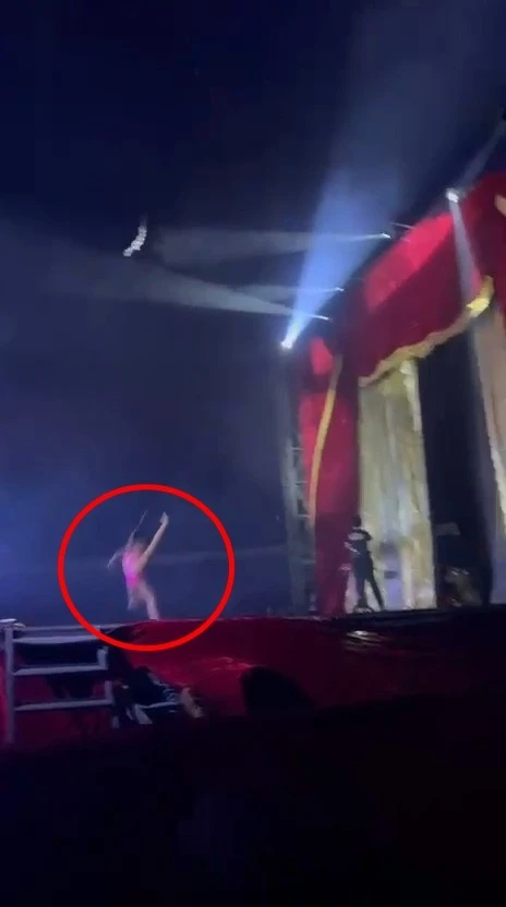 Воздушная гимнастка сорвалась с высоты во время номера (4 фото + 1 видео)