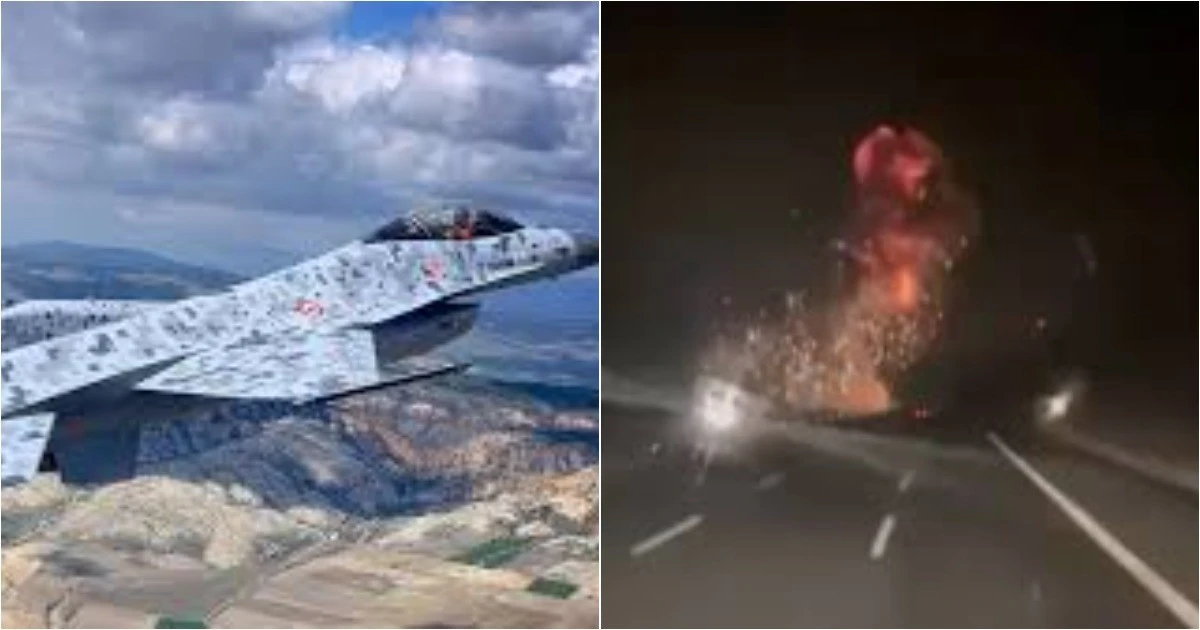 В Турции военный истребитель F-16 рухнул на оживлённую автотрассу (1 фото + 2 видео)