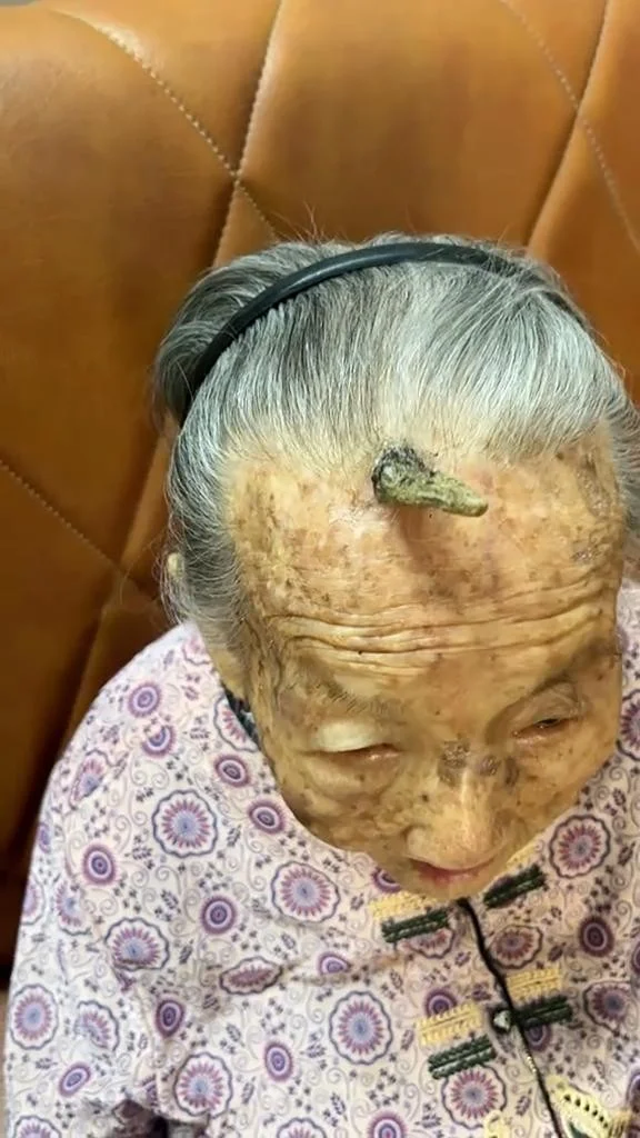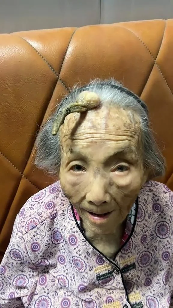 107-летняя женщина по имени Чен из Китая ошеломила пользователей социальных сетей, продемонстрировав огромный четырехдюймовый рог, растущий у нее на лбу.