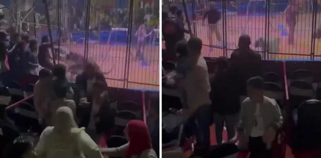В Египте тигр отгрыз руку работнику цирка во время представления (1 фото + 2 видео)