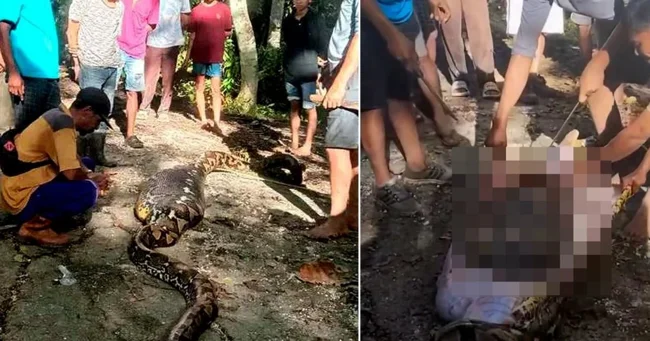В Индонезии восьмиметровый питон проглотил фермера (4 фото + 1 видео)