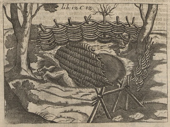 Охотники подготовили Wolfsgrube, или «волчью яму», - вырытую в земле яму, которую маскировали ветками и соломой. На дно ямы привязали петуха в качестве приманки. Волк, почуяв добычу, бродил по окрестностям, пока не свалился в яму-ловушку. Охотники набросились на пойманное животное и быстро убили его.